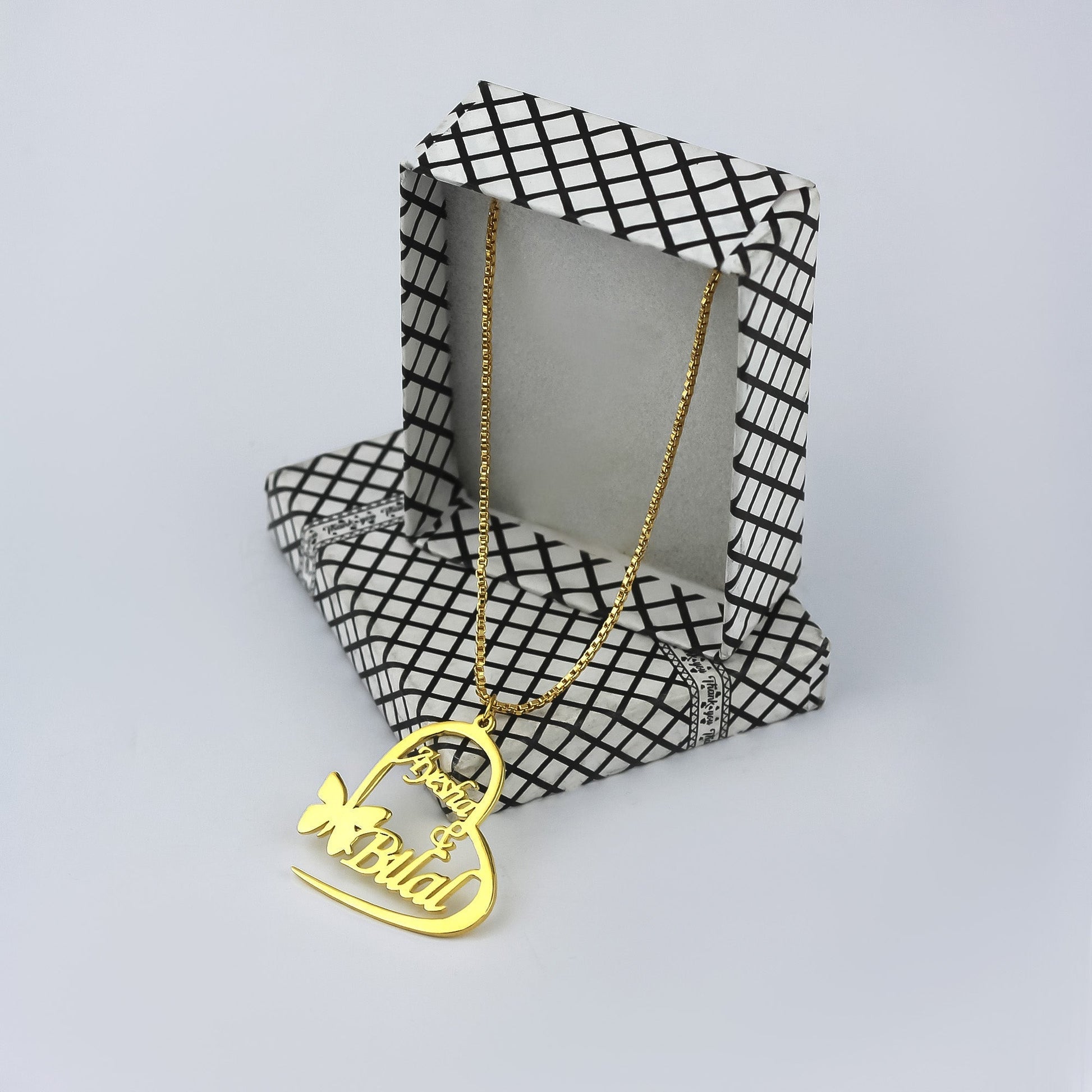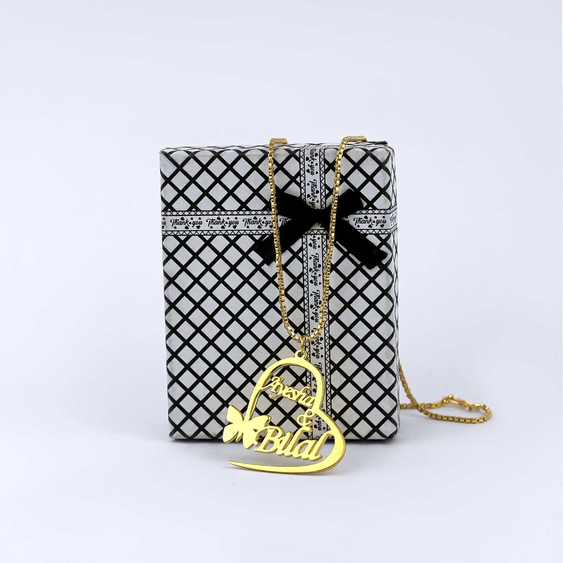 BUTTERFLY HEART COUPLE NAME NECKLACE
